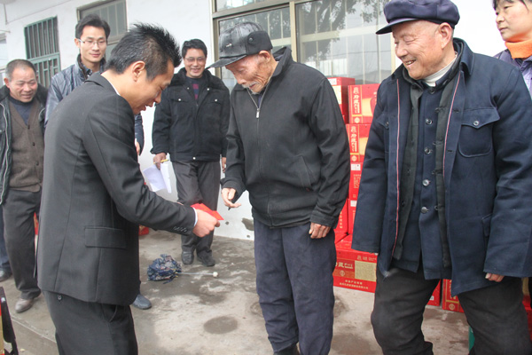 此次活動(dòng),柳溝村收到慰問府藏孔府家酒650箱,總價(jià)值39萬余元,受到老人們的歡迎。公司負(fù)責(zé)人還親自把600元慰問金分別送到9戶特困老人手中,表達(dá)對(duì)他們的慰問之情。老人們對(duì)經(jīng)典集團(tuán)的慰問表示真誠感謝,并祝愿經(jīng)典事業(yè)在2015年取得更大成績。